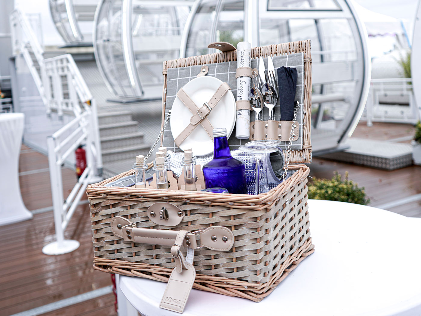 In Ihrem Picknickkorb finden Sie sechs erlesene Weine aus der Stadt Ingelheim. Passend zu diesen Weinen servieren wir eine Flasche Wasser und eine kleine Auswahl Antipasti. Jeder Wein kommt in einer 200 ml Flasche, sodass Sie jeweils 100 ml zum Kosten haben. Genießen Sie den Wein nach Ihrem eigenen Tempo und folgen Sie dabei der Reihenfolge, die perfekt für Sie abgestimmt haben. Inklusive 3 Riesenrad Fahreinheiten, ca. 45 Minuten